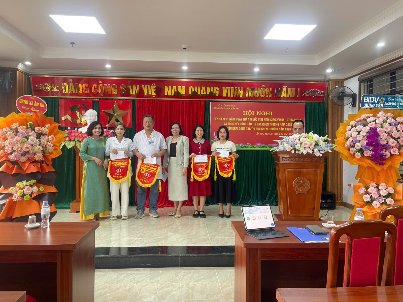 Ngày 27/02/2026, Bệnh viện đa khoa Ân Thi long trọng tổ chức Lễ mít tinh kỷ niệm 71 năm Ngày Thầy thuốc Việt Nam (27/02/1955 – 27/02/2026) với sự tham dự của Ban Giám đốc bệnh viện, lãnh đạo các khoa, phòng cùng đông đảo cán bộ, nhân viên y tế.